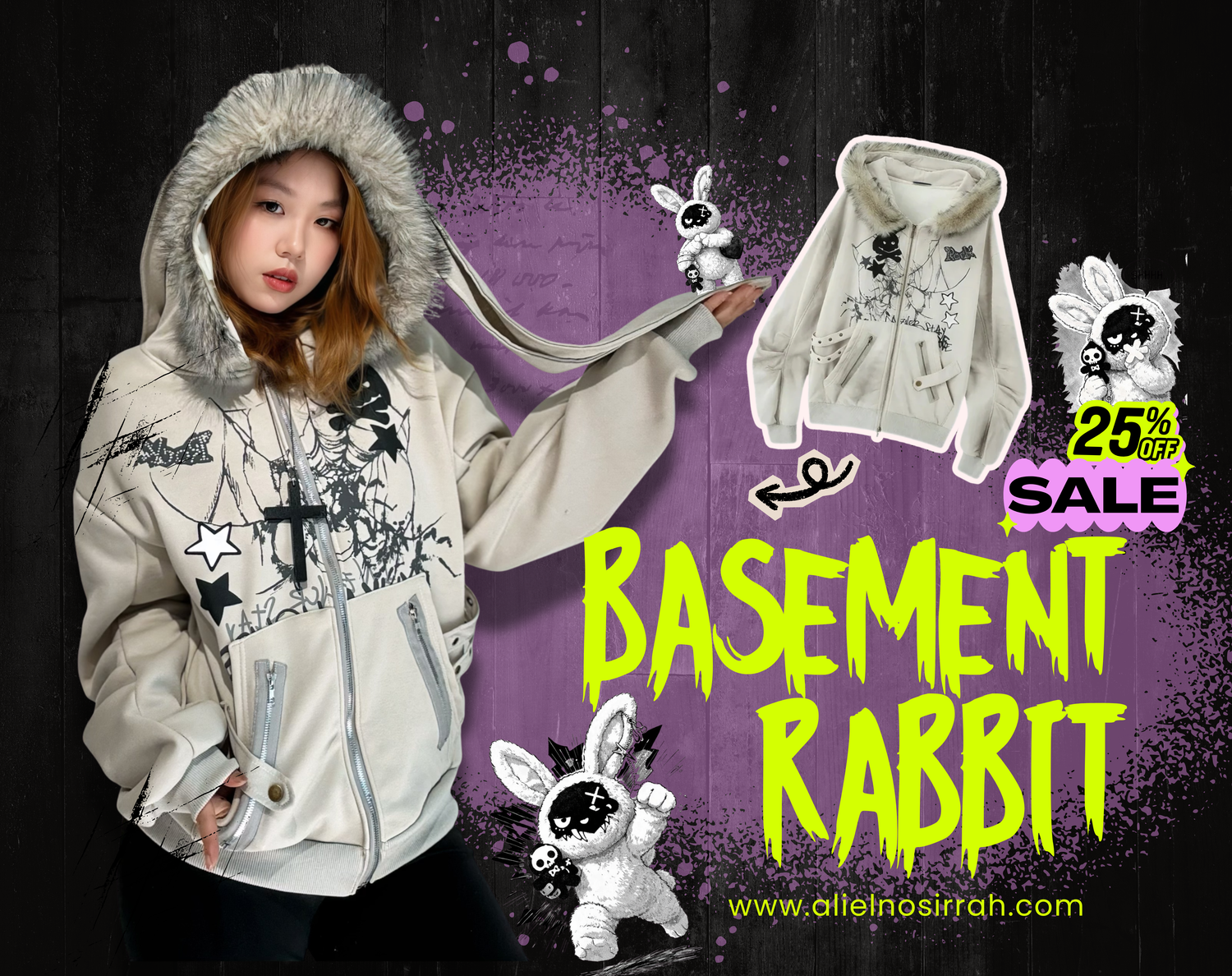 'Basement Rabbit ' Punk Harajuku Fluffy Hood Bunny Ears Hoodie