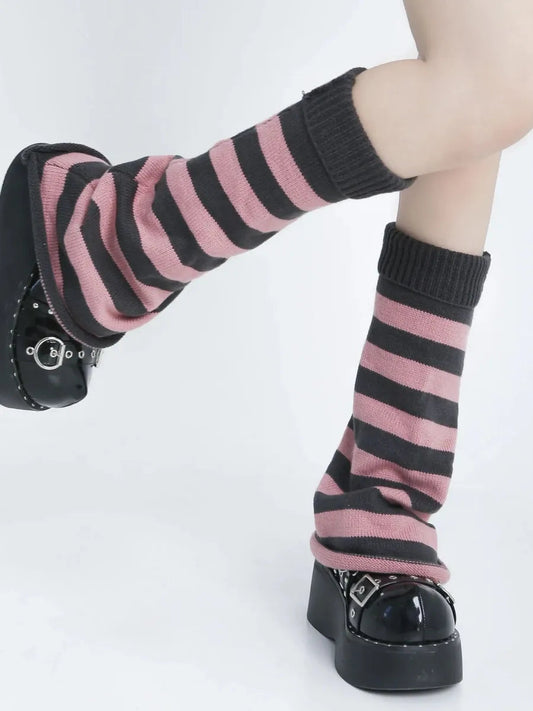 'Crepes' Kawaii Goth Striped Colorful Leg Warmers