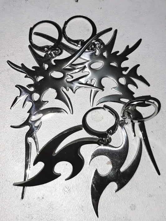 'Myth' Cybergoth Totem Silver Titanium Earrings