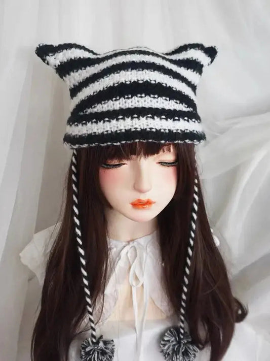 'Grunge Cat' Kawaii Knitted Striped Cat Ear Hat