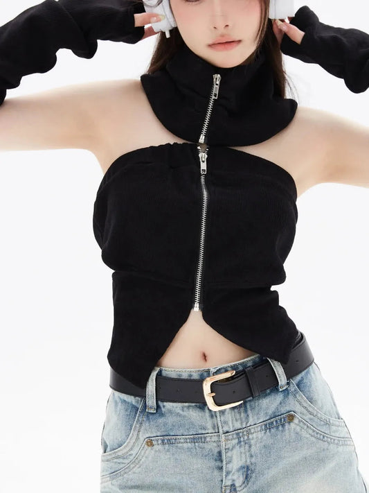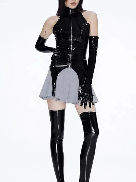 'Spy Doll' Pu Leather Gloves Tank Top Set