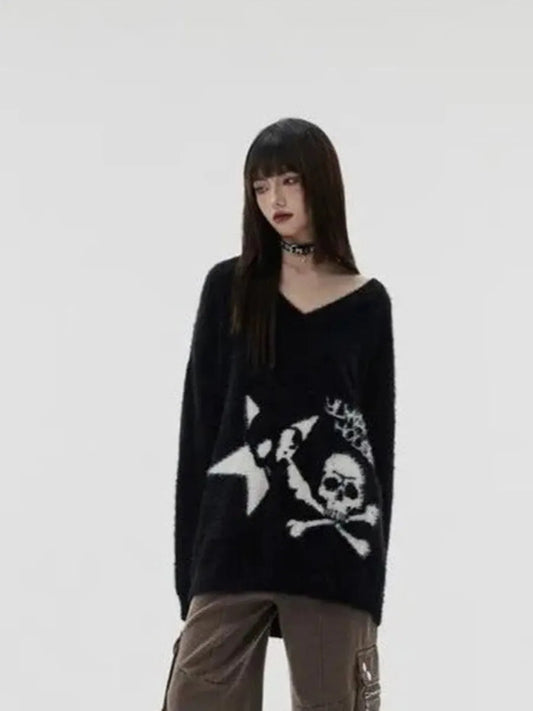 'Horror House' Dark Skull Scarf Striped Sweater