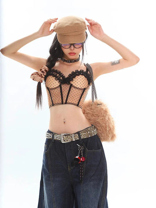 'Ginger Ale' Boutique Lace Dots Cami Corset Top