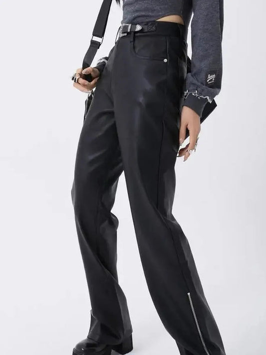 'Vaping' Punk Matte Pu Leather Zipper Pants