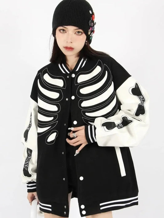 'Bone Lab' Patchwork PU Leather Bomber Jacket