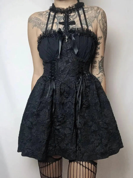 'Oath' Goth Cross Halter Neck Dress