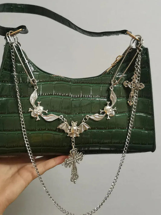 'Dark Blooded' Goth Alligatoring Underarm Bag