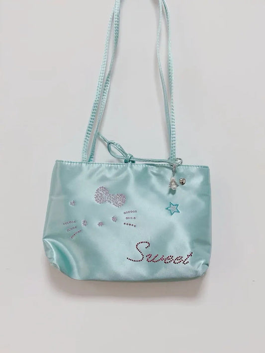 'Sweet Mint' Y2k Kawaii Silky Rhinestone Kitty Handbag