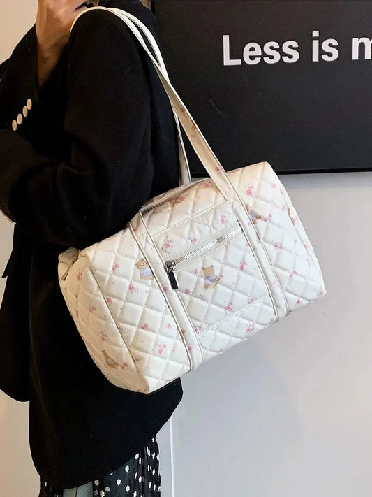 ‘Floria’Coquette Floral Bear Prints Big Volume Handbag