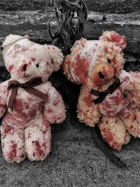 'OW!' Punk Bloody Injured Bear Bagchain Keychain