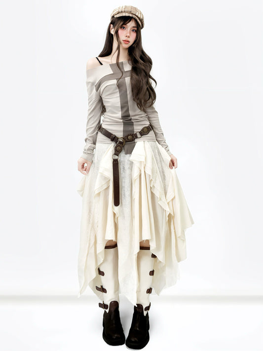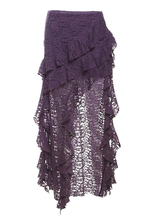 'Poetic Lover' Lace Ruffle Irregular Hem Boho Style Midi Skirt