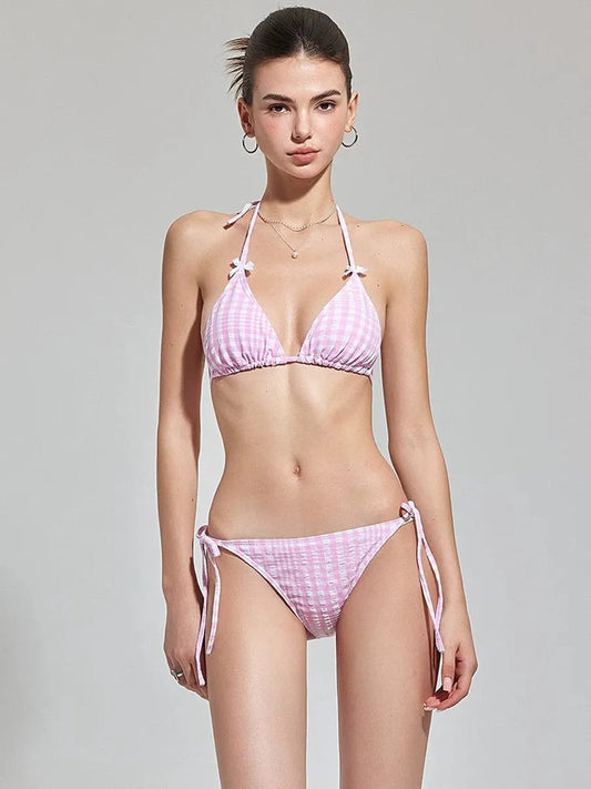 'Lolita' Coquette Pink Ribbon Bikini Pom Pom Swimsuit
