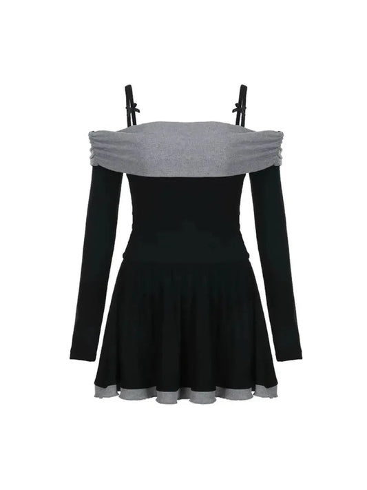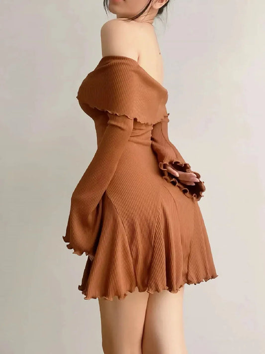 'Maple' Casual Off Shoulder Knitted A-Line Ruffle Dress