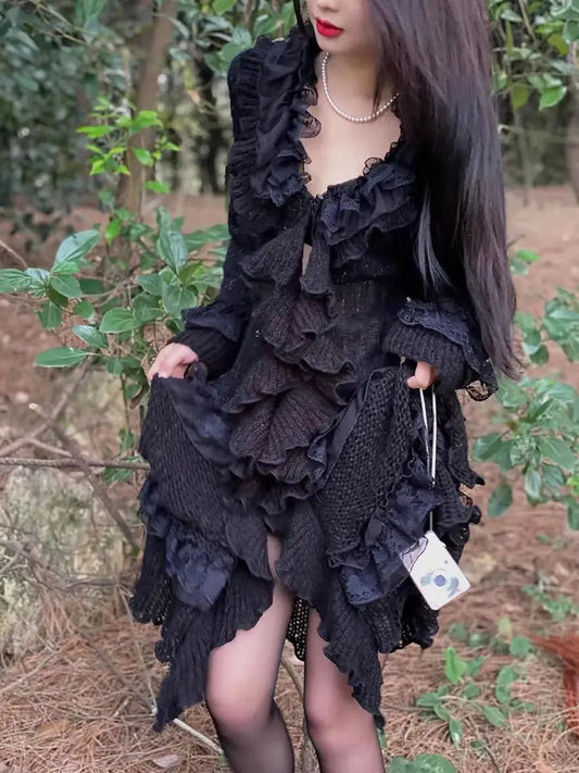 'Dear Rosa' Ruffle Knitted Sweater Dress