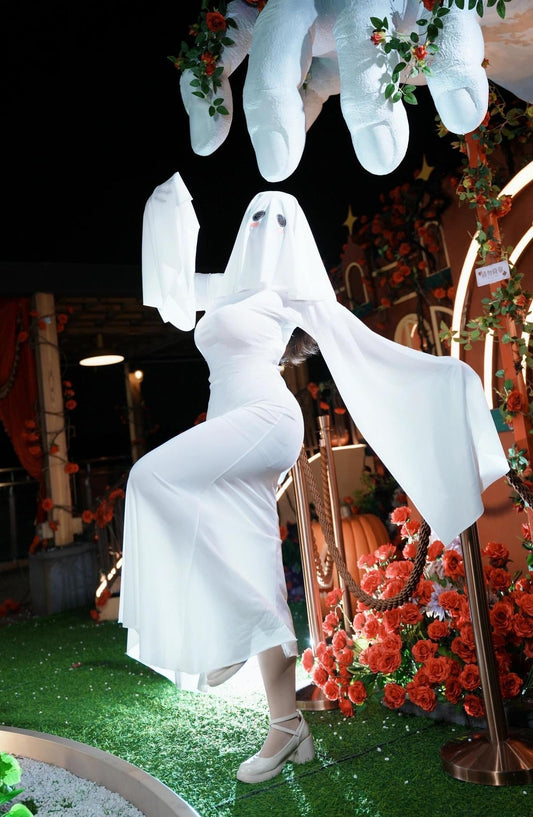 [🚀Upgraded Shipping] 'Ghost Lady' Flattering Kawaii Halloween Ghost Face Costume