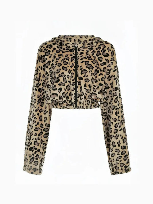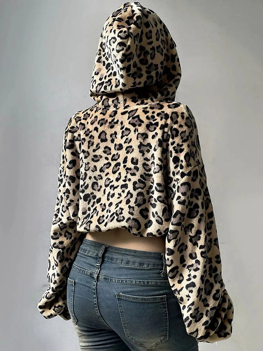 'Rock Ya' Y2k Cheetah Prints Fluffy Hooded Crop Coat