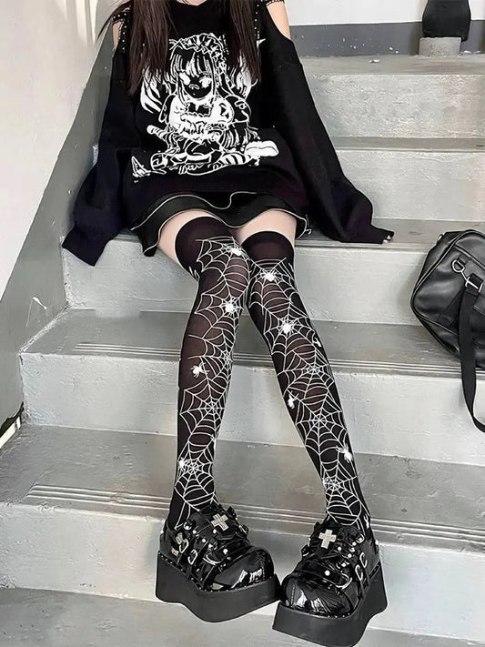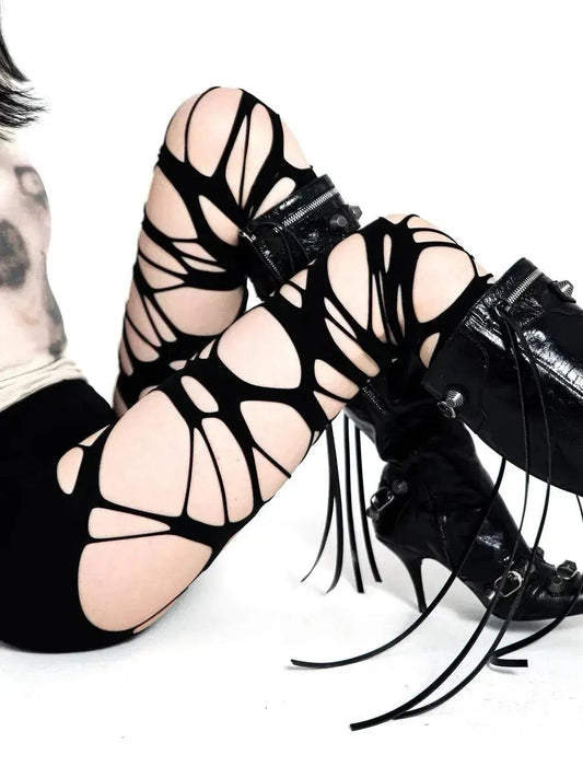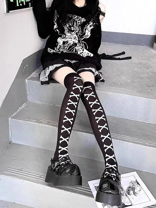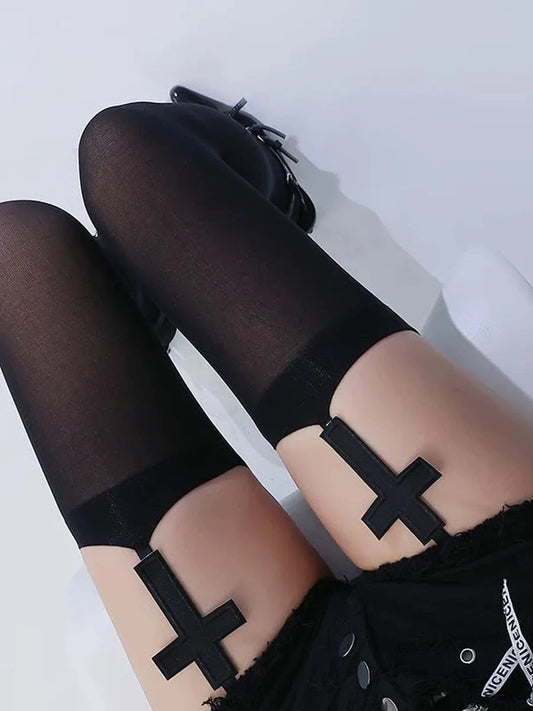 'Cross Fingers' Goth Alt Cross Suspender Tights