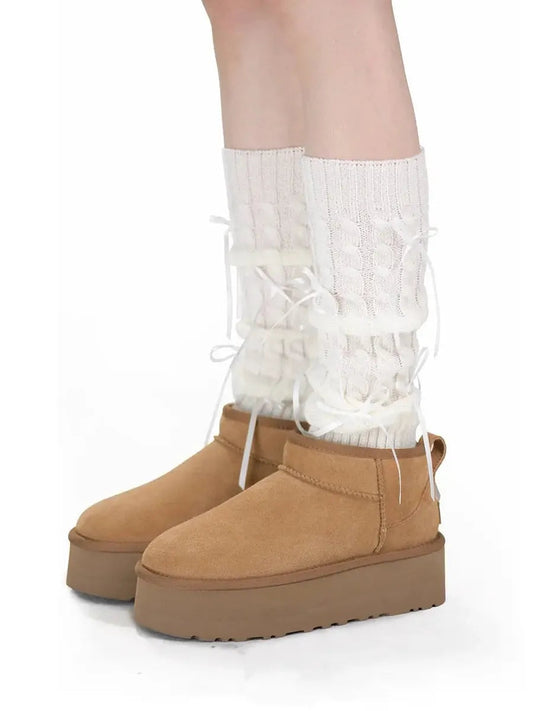 'Strawberry Bear' Kawaii Fluffy Ribbon Warm Leg Warmers