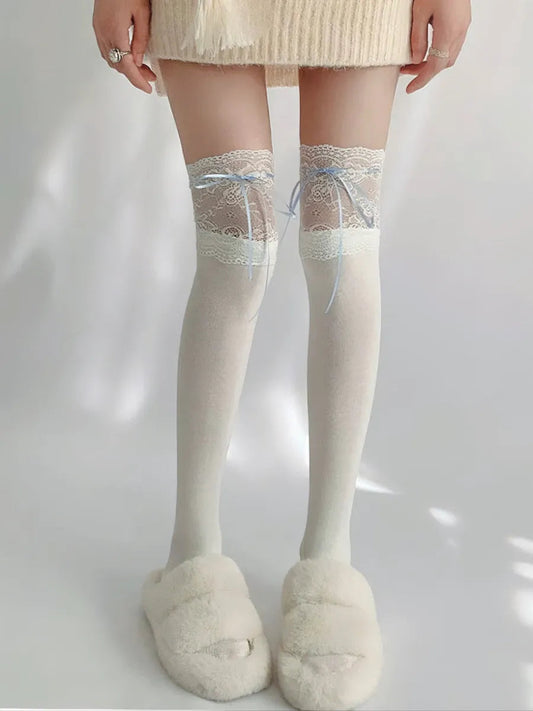 'Cream Cake' Coquette Black & White Ruffle Ribbon Lace Tights