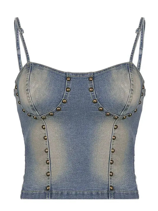 'Rabbit Grass' Fairy Grunge Denim Rivet Top