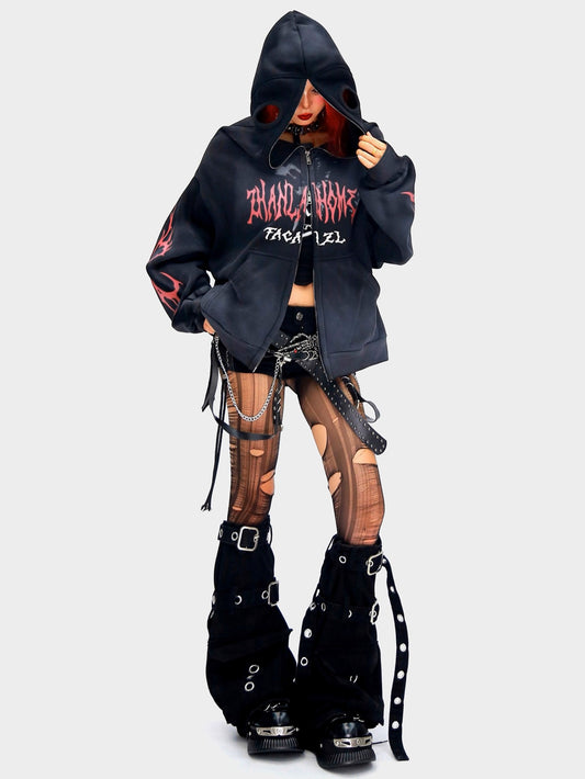 'Gaze' Letter Print Tie-Dye Hoodie with Detachable Mask & Gloves