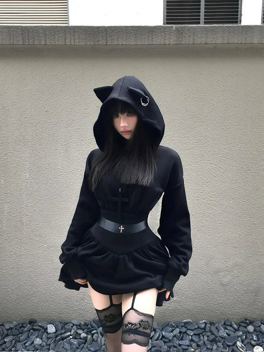 'Moon Cat' Dark Alt Cat Ears Hoop Hooded Dress