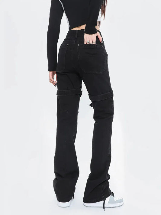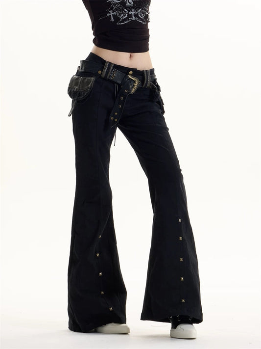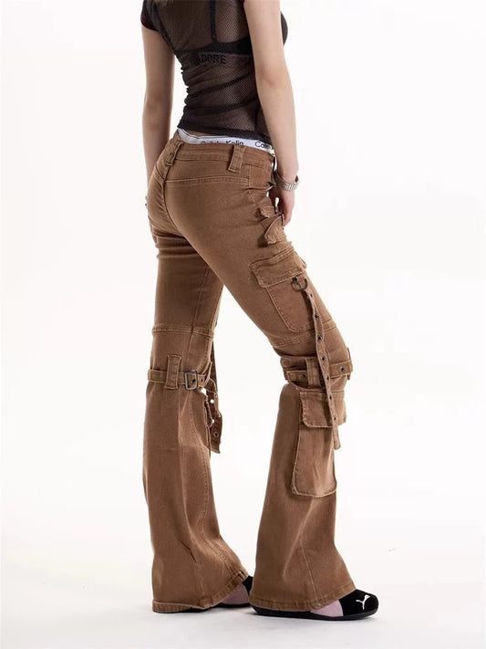 'Dirt & Mud' Wasteland Punk Buckle Multi Pocket Flare Pants