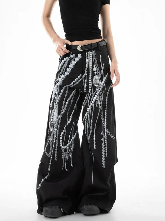 'Sneakpeak' Grunge Vintage Beaded Low Waisted Pants