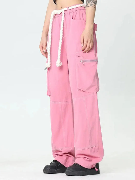 'Pink Wall' Rope Belt Oversized Cargo Pants