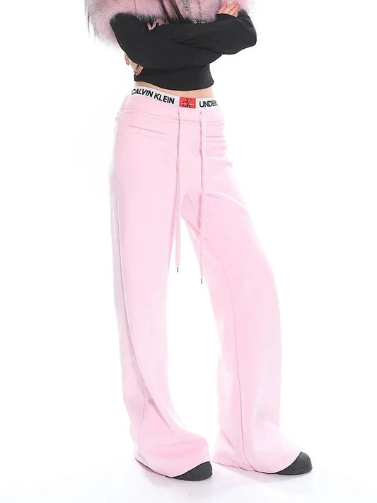 'Pink Shake'Y2k Soft Pink Fleeced Bell Shape Pants