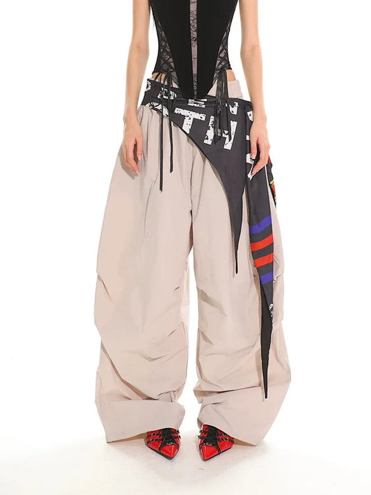 'Unchained ' Oversized Graphic Layered Street Utility Pants