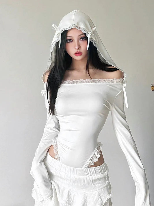'Holy Angel' Coquette Ribbon Hooded Shirts