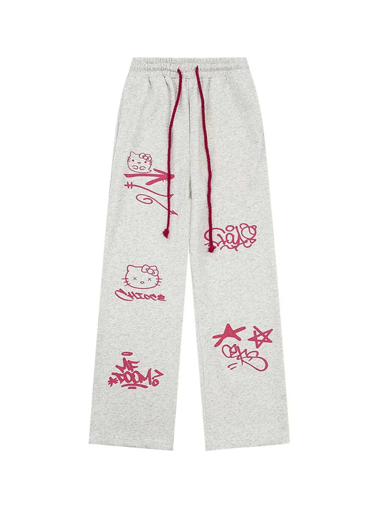 'dodgeball' Kawaii Oversized Kitty Drawstring Pants