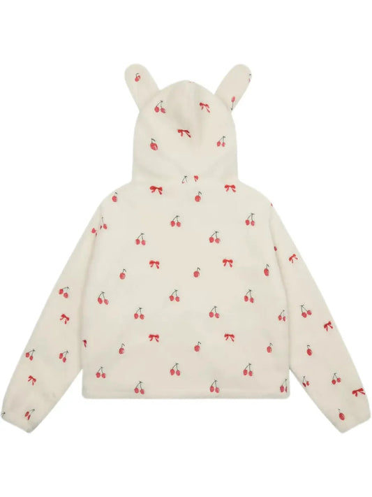 'Cherry Kiss' Coquette Cherry Fleeced Bunny Ears Coat