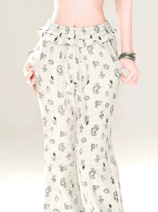'Chrome Kitty' Y2k Kawaii Streetwear Flare Pants