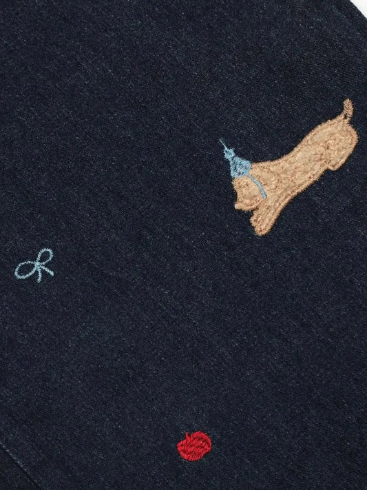 'Puppy Party' Kawaii Dots Puppy Embroidery Denim Pants