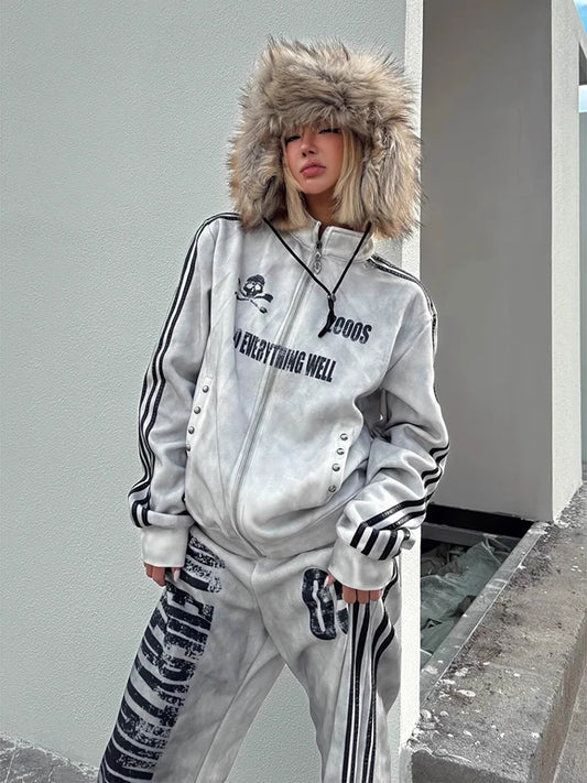 'Crosswalk' Street-Style Cross Print Casual Fleece Pants