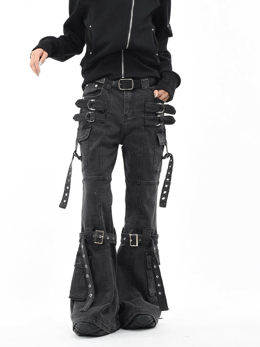 'VibeShift' Multi-Pocket Loose-Fit Flared Denim Cargo Pants