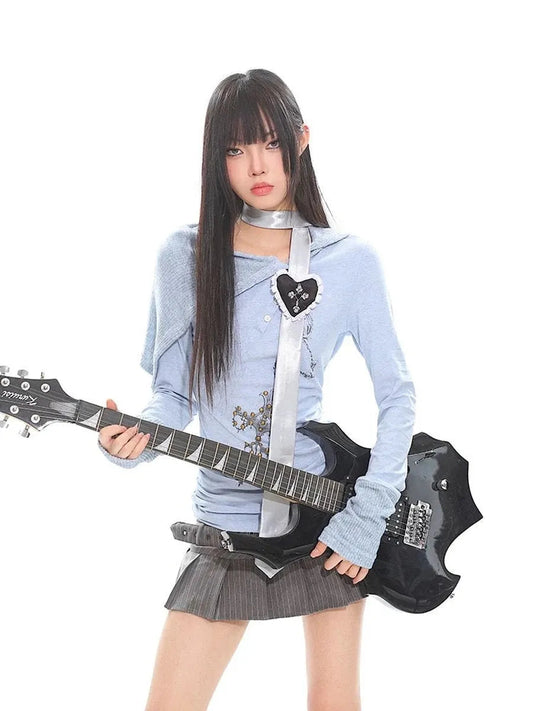'Spring Aura' Y2k Heart Shape See Through Ruffle Shirts