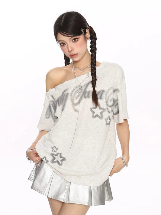 'Thunder Dream' Y2k Aura Lightening Star Pattern Off Shoulder Shirts