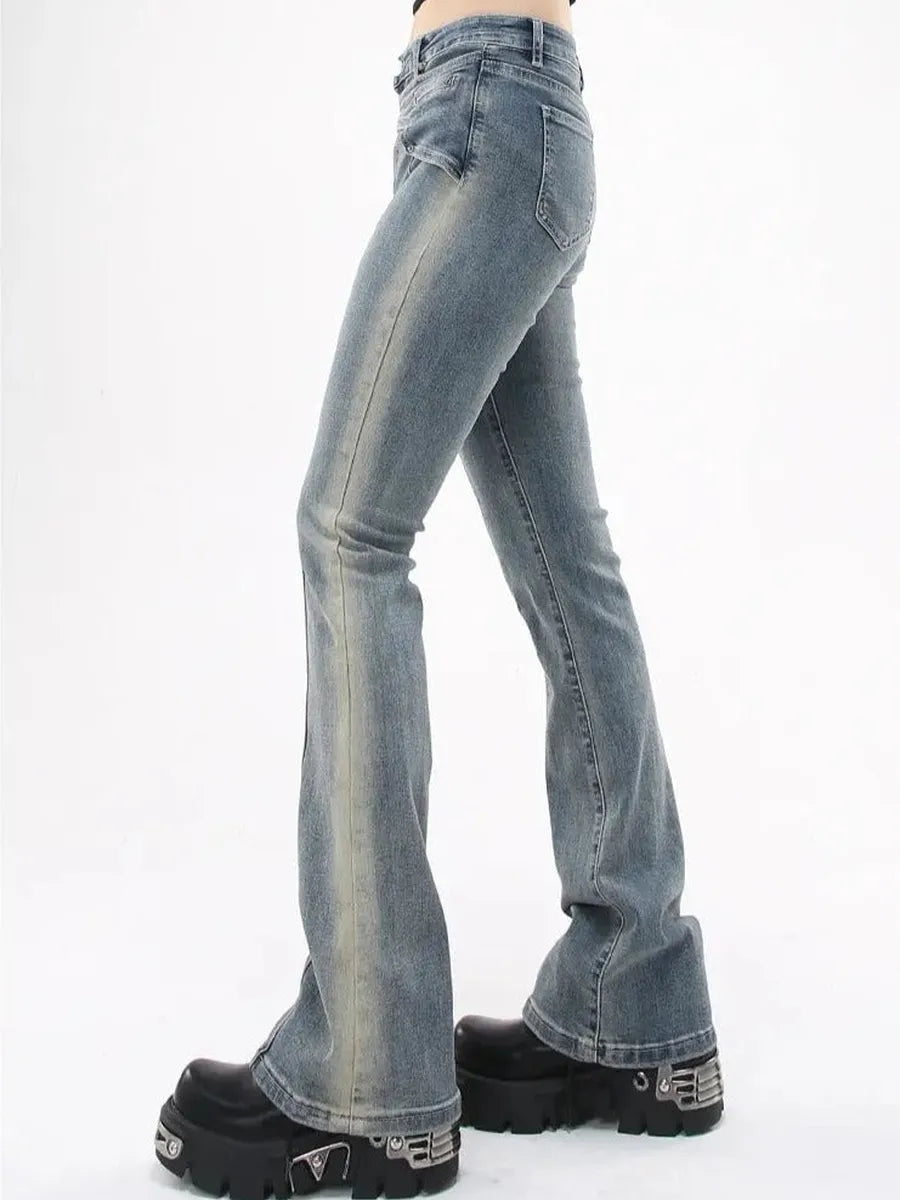 Our "Soft Cloud" Y2k pants are a great staple piece & perfect to wear in your daily life. Featuring a soft feel and vintage wash, this pair of pants can be matched with crochet or ruffled tops.