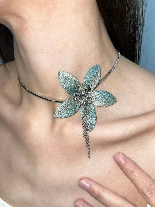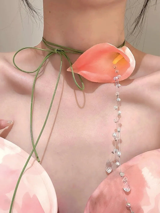 'Pure Memories' Y2k Calla Lily Summer Crystal Drip Choker