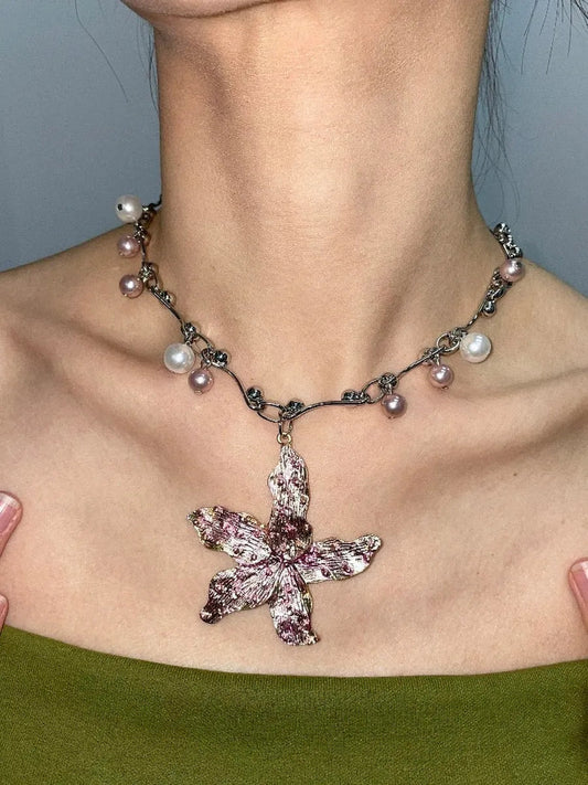 'Midnight Bloom' Pink Gradient Starfish Peal Necklace