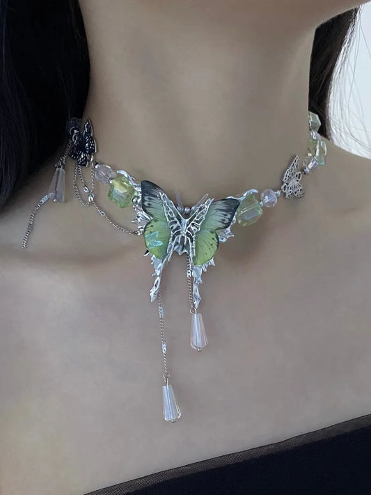 'Ice Butterfly' Y2k Summer Green Rhinestone Choker Necklace