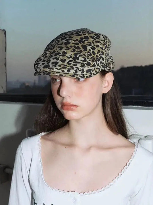 'Sassy'Y2k Cheetah Pattern Flat Cap