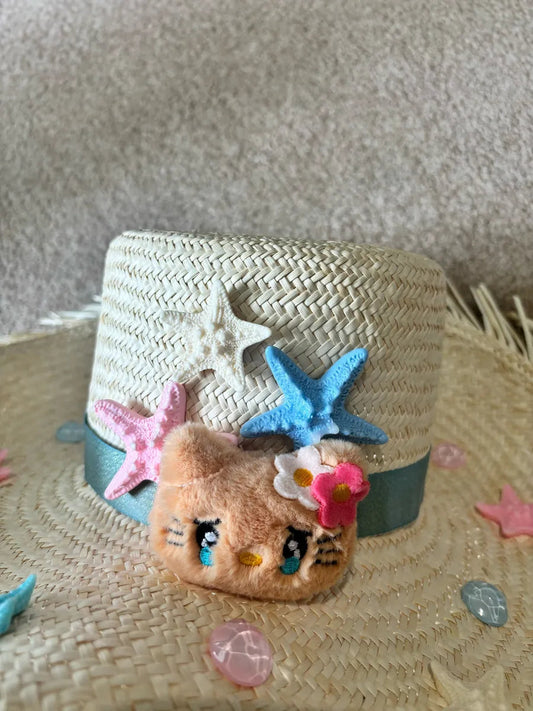 'Ocean Picnic' Handmade Kitty Plushies Starfish Summer Straw Hat