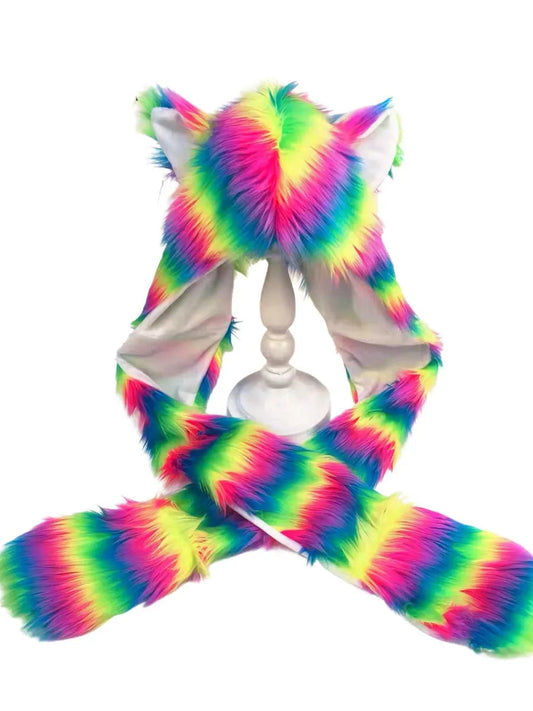 'Rainbow Bear' Furry Pride Pastel Rainbow Hooded Scarf