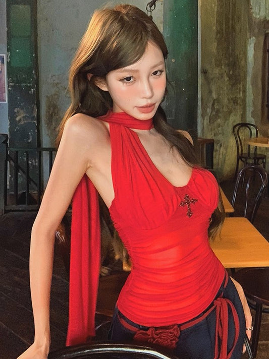 'Dazzling Summer' Mesh Halter Scarf Tube Built-In Padding Top