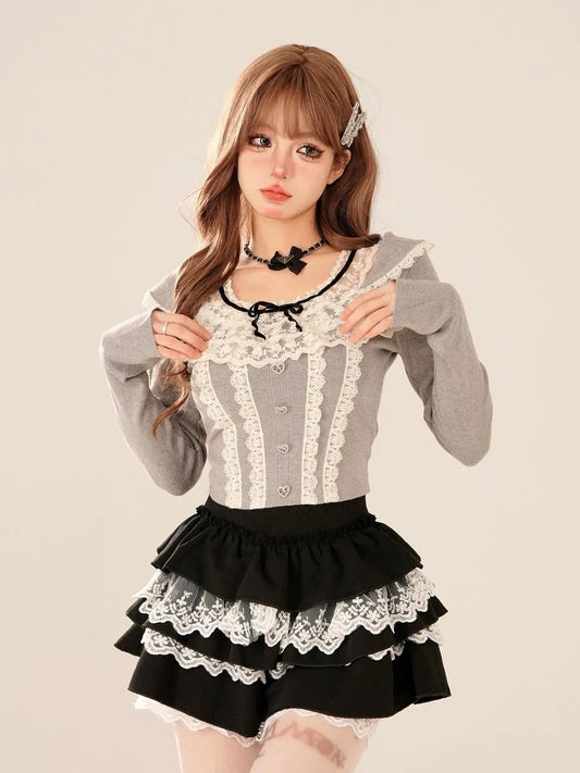 'Babe Lolita' Balletcore Lace Bowtie Shirts