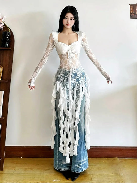 'Break Time' Y2k Boho Style See Through Lace Patchwork Top